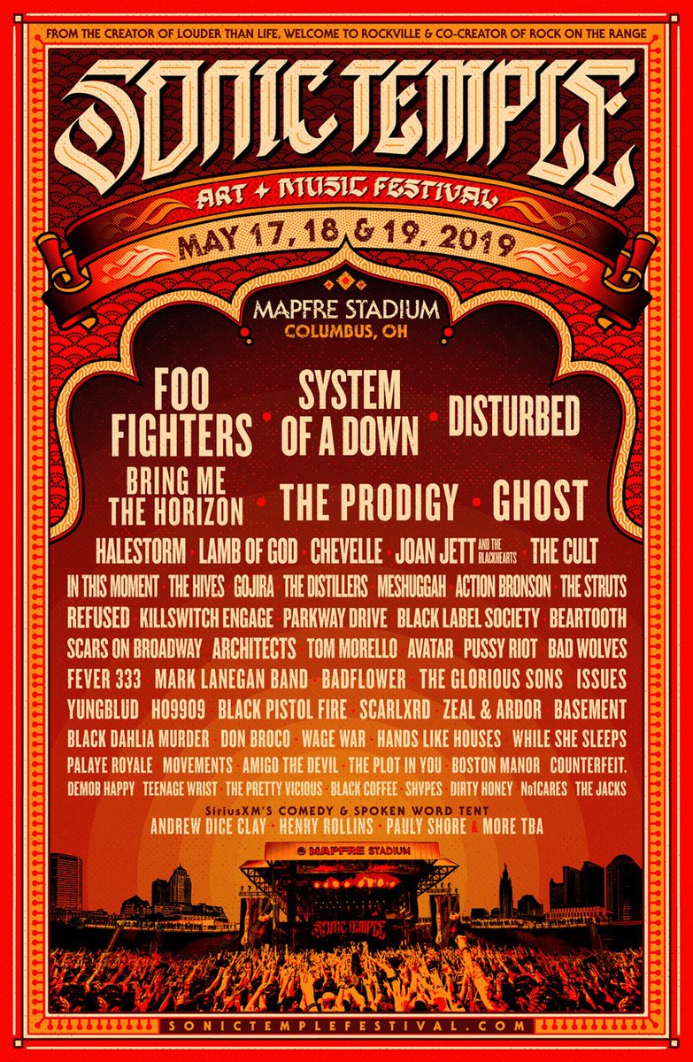 System of a Down e Scars on Broadway, banda paralela de Daron Malakian, estão confirmados no Sonic Temple Festival, evento que irá ocorrer nos dias 17, 18 e 19 de maio do ano que vem em Columbus, Estados Unidos. Até o momento, esta é a primeira data oficialmente agendada de ambas as bandas para 2019.